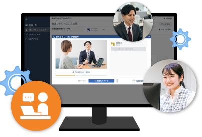トークスクリプトをもとに、アバターや動画の顧客を相手に営業トークをセルフトレーニング。好きな時間に何度でも取り組めるため、新人の早期戦力化を後押しします。