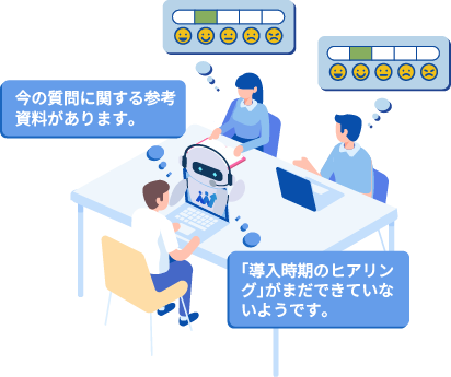 生成AIがテキスト化した商談内容をリアルタイムに分析し、参考情報の提示、タスク漏れ検知、用語説明、感情解析まで幅広くアシスト。会話に集中でき、より質の高い商談を実現します。