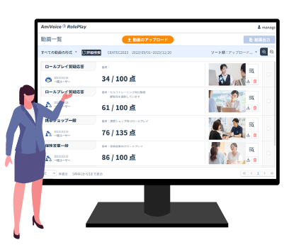 ロープレの録画をアップするだけで、AIが自動で採点・フィードバック。教育にかかる負担を軽減できます。評価したいポイントも独自に設定でき、評価基準の統一にもつながります。