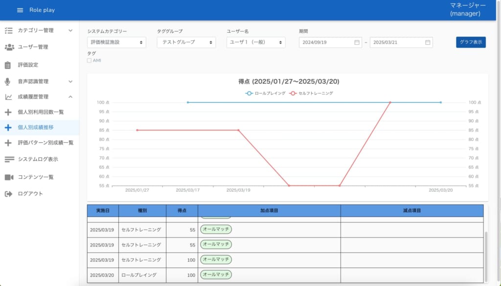 最新バージョン1.4の提供を開始。セルフロープレの学習状況をグラフ化し、トレーニング履歴や育成成熟度の管理を効率的に!